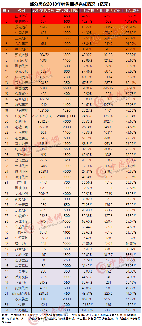 從克而瑞研究中心公布的排行榜來(lái)看,包括碧桂園、中國(guó)恒 大、萬(wàn)科、融創(chuàng)中國(guó)、保利、綠地控股、中海、新城控股、龍湖、華潤(rùn)置地、世茂、招商蛇口、華夏幸福、陽(yáng)光城、旭輝、金地、中南置地、綠城中國(guó)在內(nèi)的18家房地產(chǎn)企業(yè)前9月銷(xiāo)售金額超過(guò)1000億元。