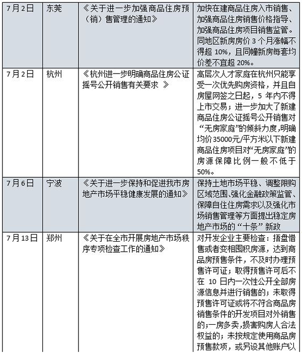 7月以來,包括杭州、東莞、寧波、內(nèi)蒙古、鄭州、深圳等房價有所上漲的城市開始出臺房地產(chǎn)調(diào)控收緊政策。
