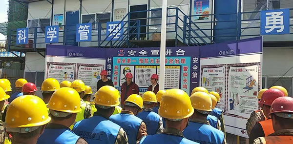 會(huì)上,集團(tuán)安技部于海從人的不安全行為、物的不安全狀態(tài)、現(xiàn)場(chǎng)作業(yè)環(huán)境等方面進(jìn)行了公司級(jí)安全教育,F(xiàn)場(chǎng)管理人員劉政、彭麗群分別進(jìn)行了項(xiàng)目級(jí)安全教育,并要求班組長(zhǎng)每天班前進(jìn)行班組級(jí)安全教育。